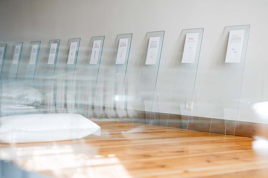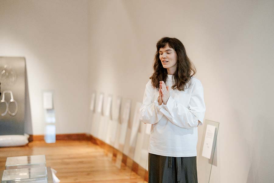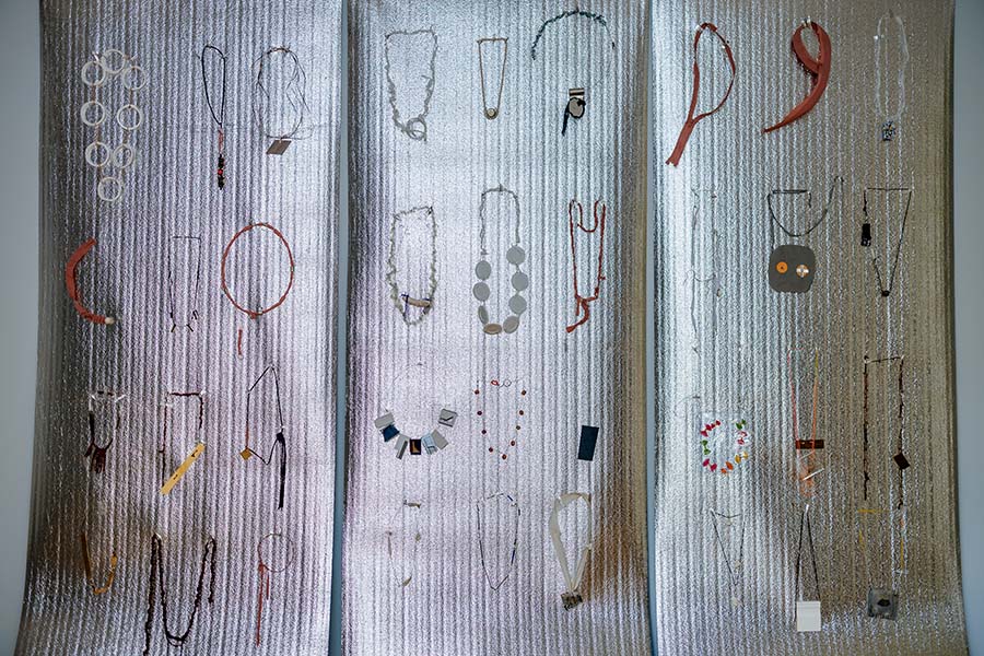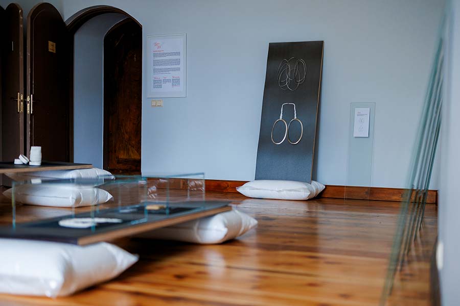“Plānojot izstādi, ievēroju zīmīgus pieturas punktus savā dzīvē. Protams, studijas Latvijas Mākslas akadēmijā ir viens no tiem. No bakalaura un pēcāk maģistra programmas studentes kļuvu par vieslektori. Nu jau deviņus gadus esmu kolēģe saviem skolotājiem Andrim Silapēterim un Arvīdam Endziņam. Mans maģistra darba vadītājs bija profesors Juris Gagainis (1944-2017). Studiju laikā manu redzesloku būtiski paplašināja mācības Francijā, Strasbūras Mākslas akadēmijā, studiju apmaiņas ERASMUS ietvaros pie pasniedzējām Sofijas Hannagārtas (Sophie Hannagarth) un Floransas Lēmanes (Florence Lehmann). Dalība Minhenes rotu nedēļā (“Munich Jewellery Week”) vairākus gadus, apvienojoties starptautiskā mākslinieču kolektīvā “Hatara project”, palīdzēja iepazīt kolēģus no citām valstīm un iepazīt dažādus darbības virzienus rotu mākslā. Arī Rotu mākslas biedrības pirmās izstādes Cēsīs, Valmierā un Kuldīgā, pēc tam Rīgā un Viļņā, spēcīgi formēja manu pieredzi kā māksliniecei un arī kā kuratorei. Jau otro periodu esmu bagāta ar iespēju darboties Rotu mākslas biedrības valdē. Pēdējie gadi ar biedrību “LAUKKU” un performancēm festivālā “Baltic Take Over” Helsinkos un pēcāk “Homo Novus” Latvijā atvēra jaunas sadarbības pieredzes ar dejas un skaņas māksliniecēm. Video darbs “Priekšmetu atmiņa”, kas redzams izstādē, ir sadarbība ar laikmetīgās dejas mākslinieci Terēzi Zabarovsku,” tā par sava redzējuma veidošanos stāsta autore Ginta Grūbe.