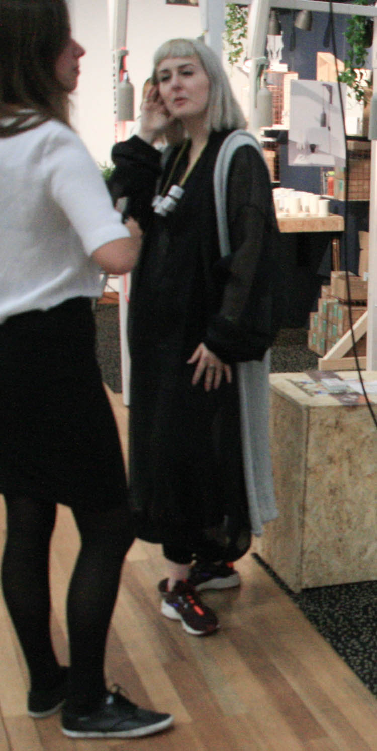 Another thing I wanted to note is that some of the pieces that people were are pointing out their belonging to the event as the next example show. The women with her DDW ticket-bracelet.